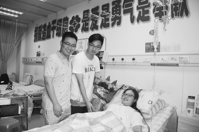 8日,陈端成功捐献造血干细胞后,她外甥孙文俊(左一)在医院陪伴。 “我省每年非亲缘关系成功捐献造血干细胞的只有15例至20例,而陈...[2016-08-09]